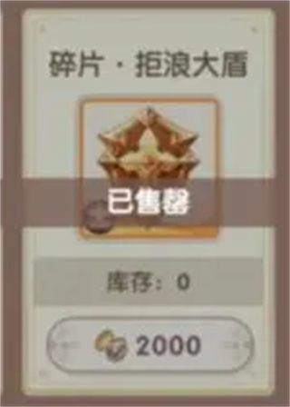 1、拒浪大盾:获得方法在邂逅商店兑换,每日可兑换2个,兑换一次过后再换就是10碎片, 通过抽卡得到的邂逅币,(比主角碎片便宜多了哈哈哈)