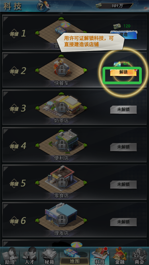 5、用许可证解锁科技,可以直接建造店铺。