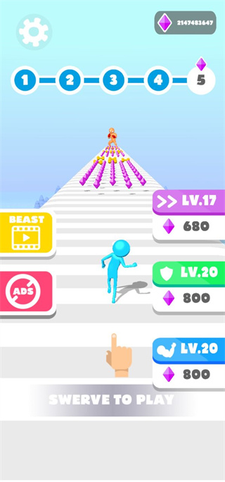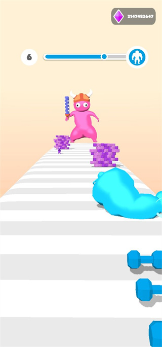 2、然后在跑酷的过程中我们最好多收集蓝色的杠铃,不要去捡红色的;