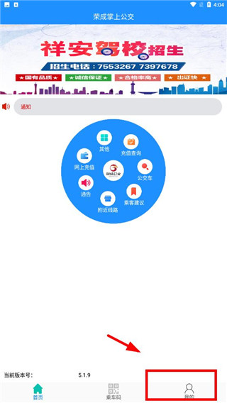 1、下载并安装本站提供的荣成掌上公交app最新版,打开即可进入软件