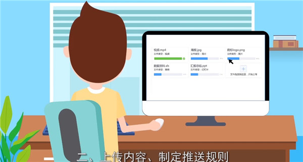 7、然后选择自己的内容上传到软件,选择推送的规则;