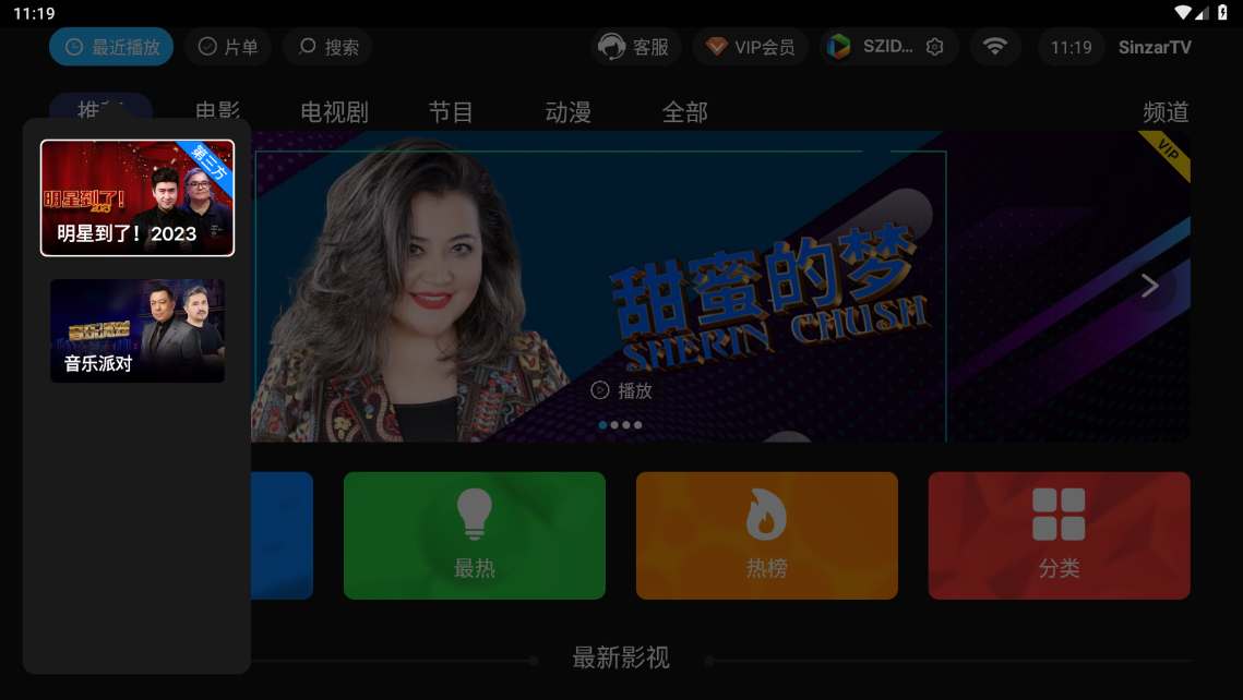SinzarTV电视版2025是新疆本土流行MV、精彩综艺节目、定时更新的访谈节目的app,该版本支持用户安装在电视上,即可享受更好的观看体验!