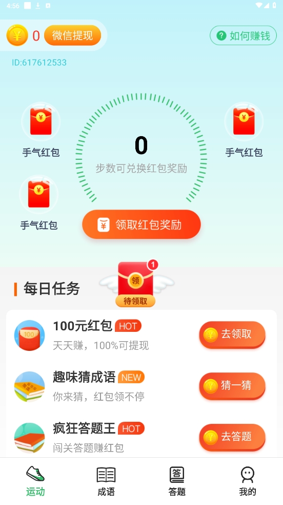 最让我心动的是它的赚钱模式,成语答题也能赚红包,既有趣又能激励运动,简直是双赢!总的来说,这个App不仅实用,还充满趣味性,对喜欢健康又想赚钱的人来说真的太友好了!