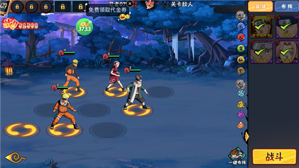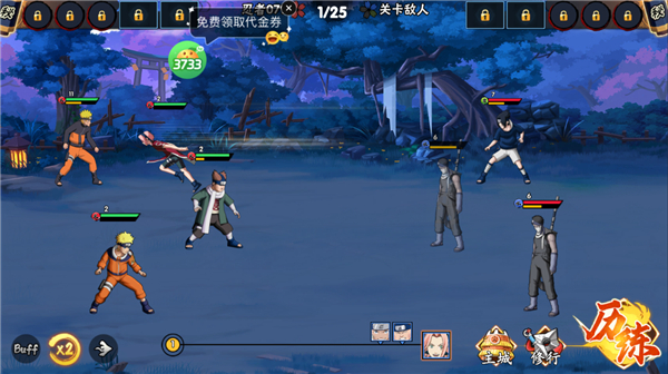 7、【在线福利】每日在线免费1000木叶币+200 连抽,随意组建专属的传奇忍者小队。
