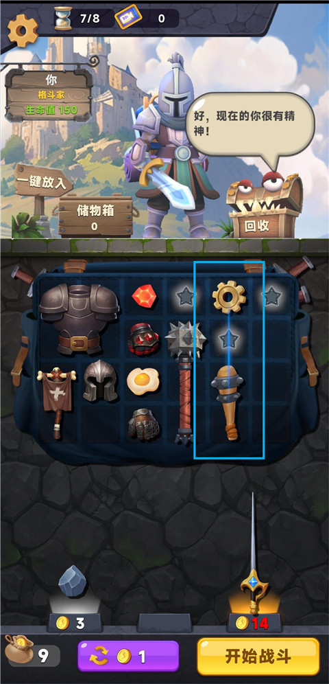 3、无需玩家操控,背包内的物品会自动战斗。