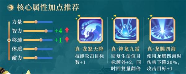 5、推荐人群方向:整体来说,龙宫比较均衡万金油,两种方向的觉醒技能可以根据固定队去动态调整,比较适合想玩输出,同时也随时准备补位的好人位。龙宫上手难度不高,比较适合萌新玩家,就算简单粗暴的5智加点,也能稳定体验暴力输出的快感!