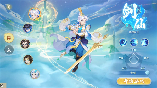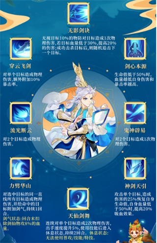 1、职业定位:从创角五维图及技能介绍可以看出来,剑仙定位【物理单体输出】