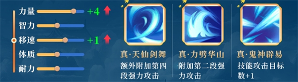 3、因为剑仙初始定位为物理单体,也可以通过解锁群伤技能,实现剑仙群伤路线,真·鬼神辟易和真·力劈华山均有不错的群伤效果。
