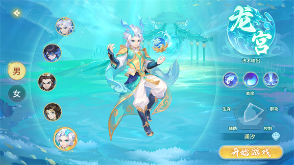 1、职业定位:从创角五维图及技能介绍可以看出来,龙宫定位【法系群伤辅助】