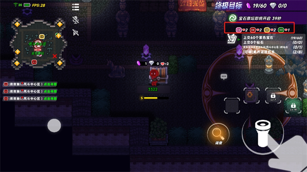 2、开始游戏后,玩家需要收集紫色水晶,全队需要达到六十个。