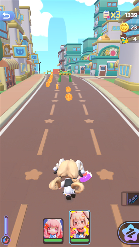8、在界面点击go是正常跑酷模式,玩家可切换3个不同角色进行跑酷,不同角色技能也各种不同