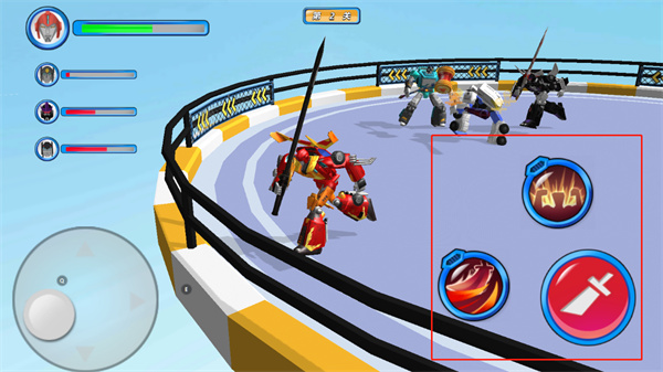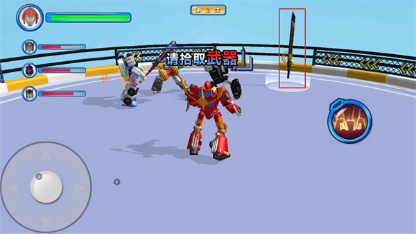 变形机甲超人游戏内玩家可以撞击对手,争取快速到达终点,进入终点之后,我们要拿起武器,点击页面左下角方向按钮来攻击对手,打败对手赢得胜利,如果你失败了,在失败页面,我们点击重新挑战按钮来进行第二次挑战。变形机甲超人游戏中提供了多种类型的游戏模式,玩家能够感受到不同模式的乐趣,还具有升级设定,玩家能够将机甲进行升级,提升机甲的战斗力。有兴趣的小伙伴还在等什么,快来下载游戏畅玩一番吧!