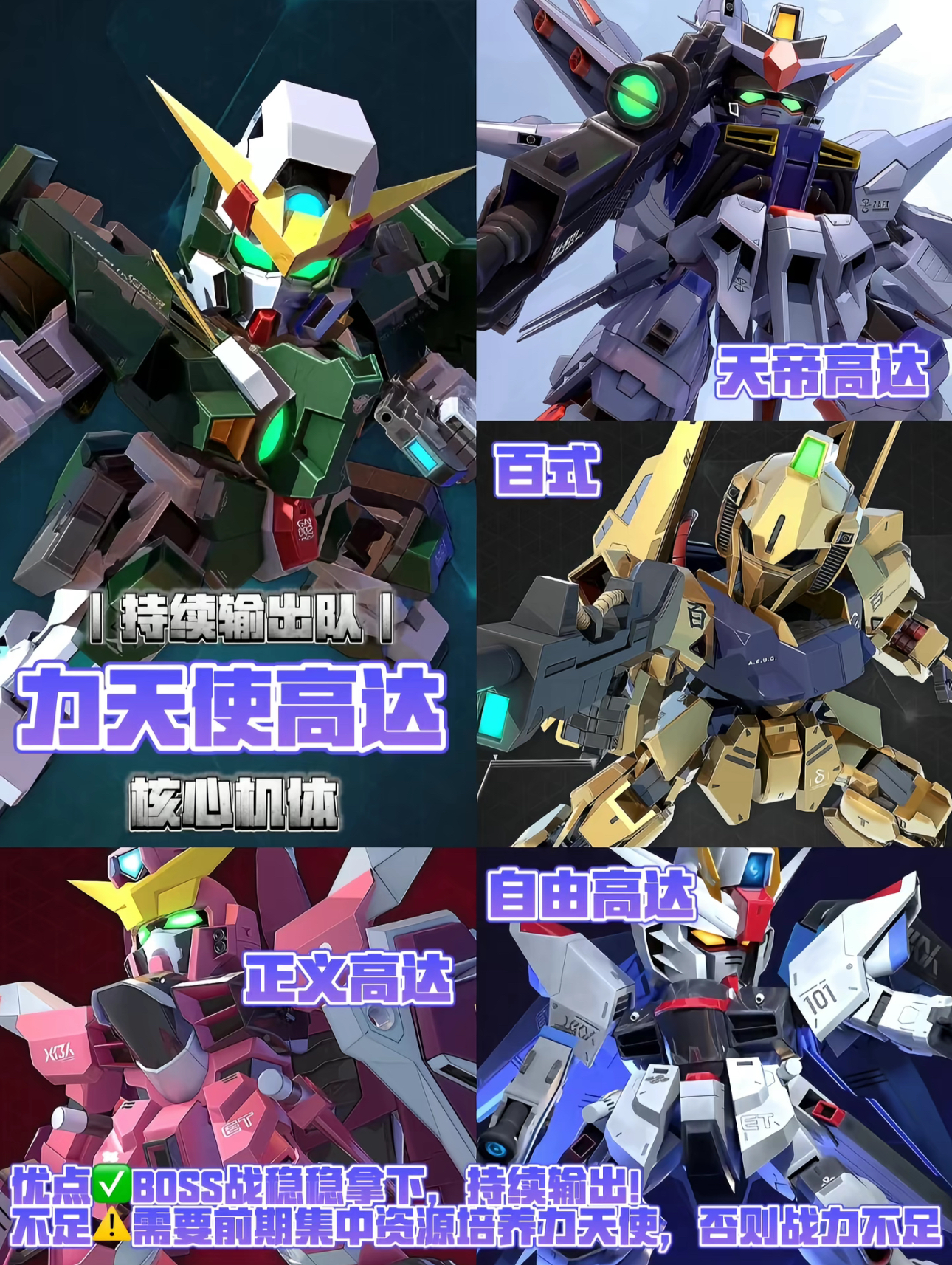 配队:正义高达+自由高达+百式+天帝高达