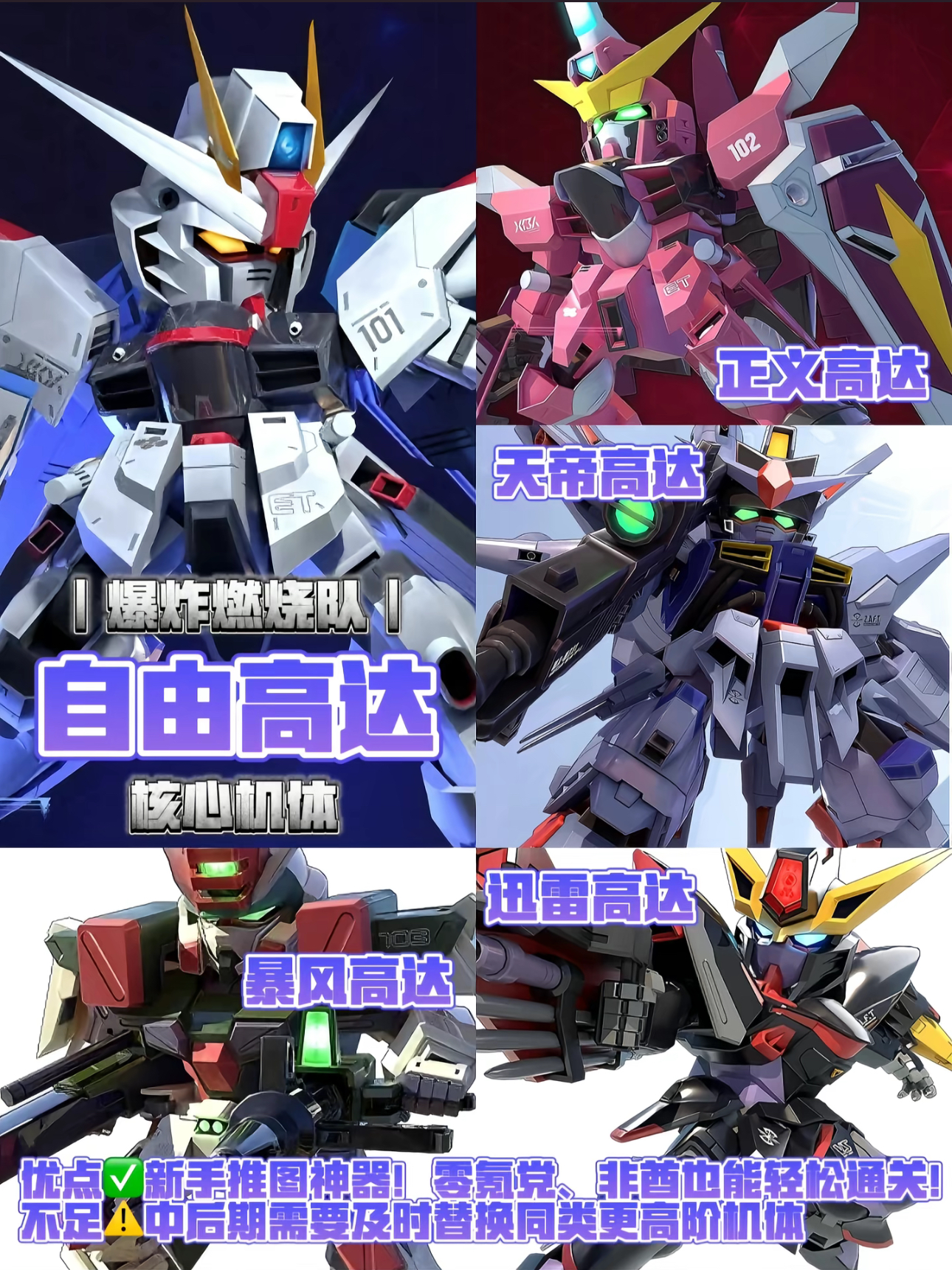配队:正义高达+天帝高达+暴风高达+迅雷高达