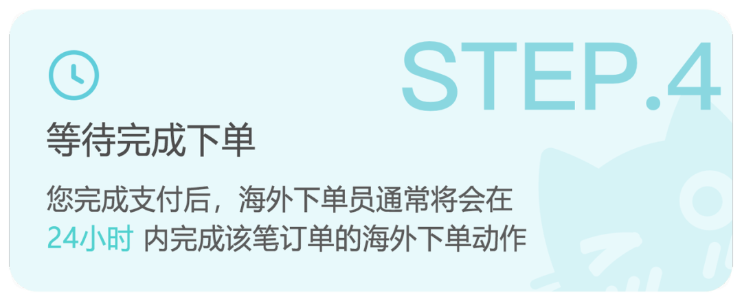 当订单状态更改为“已下单,等待海外商城发货”时,则表示您的订单已经成功下单,通常您只需等待海外商城发货即可。受客观因素影响,该状态的订单您无法以任何主观理由申请消单退款,因此请您于付款前充分确认您的购买意向和所购商品是否正确。