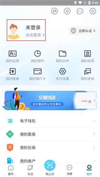 1、首先大家需要下载安装莆田惠民宝app,打开进入软件。