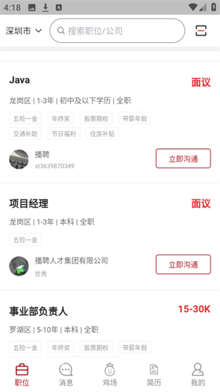 3、老板和求职者打开软件就可以马上开聊;聊天界面;