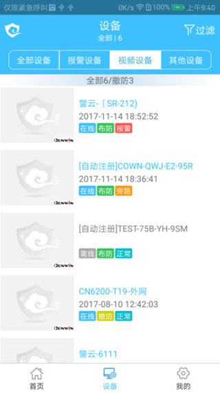 3、并且该页面还支持【分类】查看,例如报警设备、视频设备、其他设备。