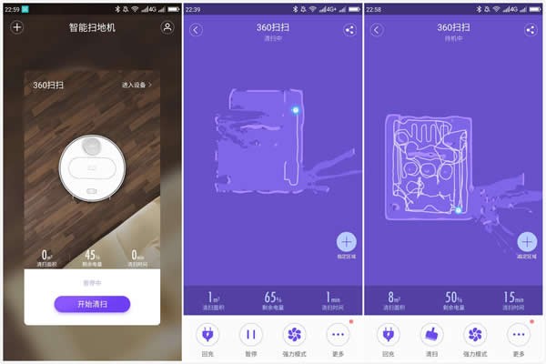 360扫地机App官方版是配合360旗下首款智能扫地机器人硬件使用的配套App。通过手机360扫地机器人app可实时查看扫地机的行走路线、轨迹、状态、清扫面积、清扫时间、电量等信息。其支持多种清扫模式选择、可以自定义清扫方案,可自动划分房间也可手动编辑,扫拖禁区、线性虚拟墙及扫地机被困时自动提示设置禁区组成的智慧禁区让扫地机令行禁止,同时可实时查看清扫轨迹,进行指定区域清扫及定时预约清扫等操作。360智能扫地机器人App还能设置清扫区域,甚至清扫区域和禁区的花式设置,总之,让你的清扫随心所欲。