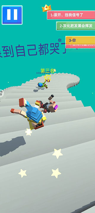 1、在漫长的下楼梯过程中小心他人的阻碍,用你的巧妙操作躲避对手的攻击;