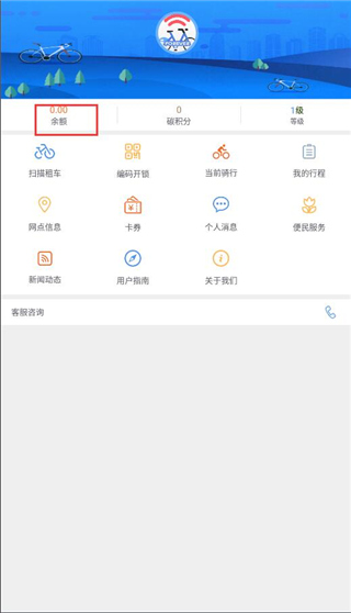 3、充值成功后就可以进行租自行车了,我们可以选择扫描租车、编码开锁;