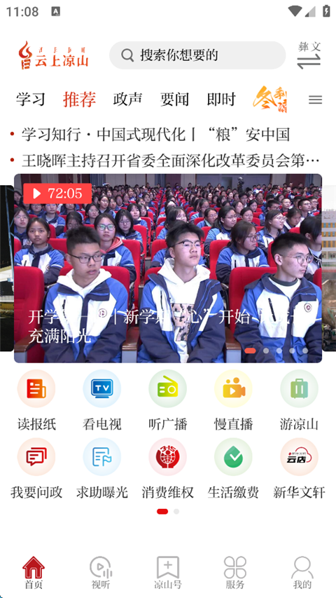 以提供凉山本土要闻和资讯为核心,涵盖新闻咨询、网络视听、电视直播、便民服务为一体的掌上移动客户端产品。