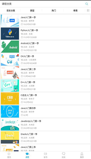 2、课程可以以分类来找,也可以找热门的,还有难易的,我们点击一个课。