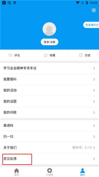 2、进入个人主页界面后,接下来点击点击【意见反馈】