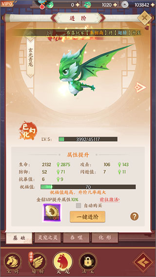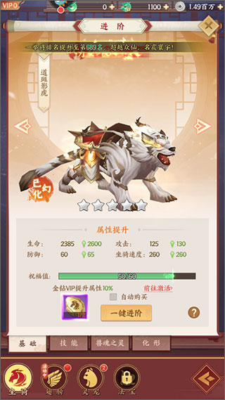 2、进阶:同样是使用“进阶石”来对其进行进阶,这个材料可以通过宠物副本、商店、BOSS随机掉落等方式来获取。