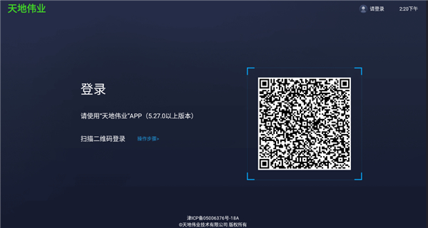 1、首先我们需要打开天地伟业app,登录账号点击右上角的+号。