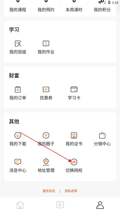5、用户还可以点击切换网校切换不通的网校进行学习。