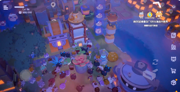 注意:在开放另一片岛屿时要及时建造新的新的工厂与帐篷,因为前期猫是不会去另一片岛上的,猫在碰到水时会极度减缓速度甚至淹死,所以要及时放置资源,只有后期解锁的存放类建筑派出的猫猫可以去别的岛上