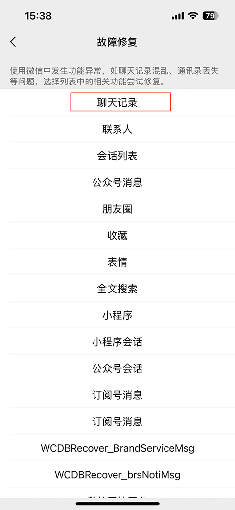 如果聊天记录丢失是由于微信软件异常导致的,可以使用微信自带的修复功能: