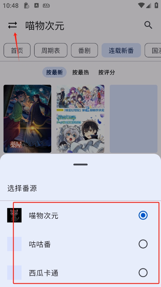 7、如果觉得内容不够看或者不好看可以点击左上角的杠杠切换别的番看。