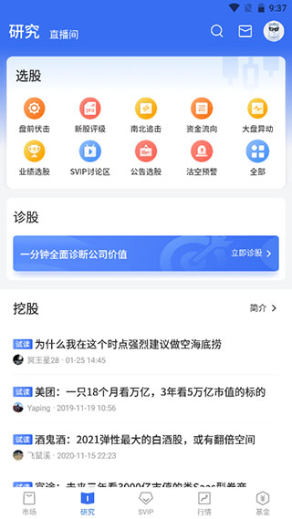 2、通过软件中的研究分析与直播,学习投资知识,优选股票证券投资