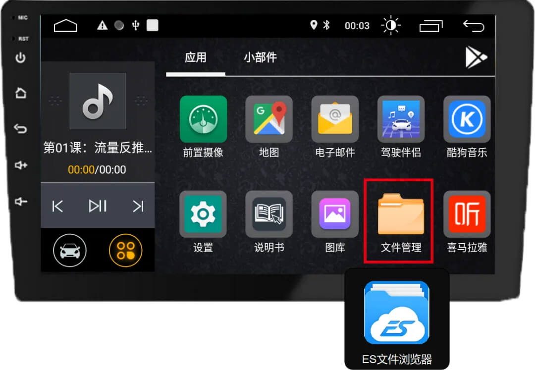 车机端打开文件管理(或者ES文件管理软件)或者APK管理器