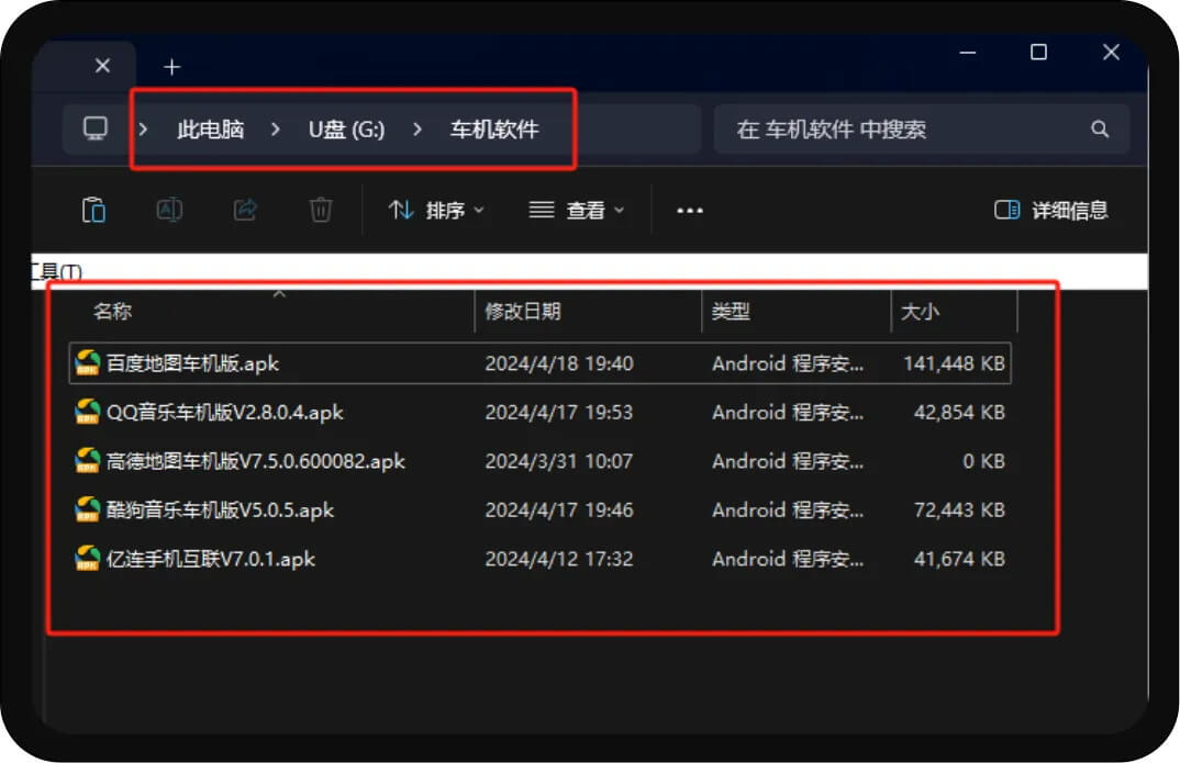 使用电脑或者手机下载车机版软件,复制到U盘。建议使用电脑操作