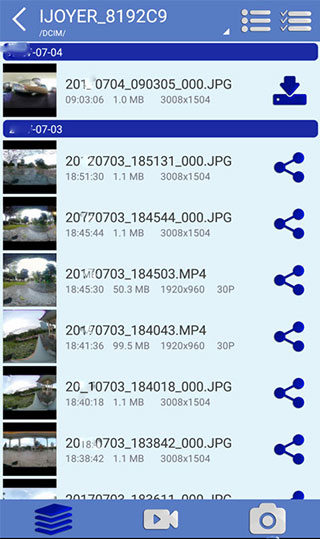 艾卓悦全景相机app是一款具备独特全景相机拍照辅助功能软件,支持手机端、电脑端的全景来的来回拖动,随时随地查看各个全景视角。软件操作十分简单,用户只需将安卓手机的WiFi与相机设备进行连接,即可使用软件的各项功能,如即时监控,下载档案、线上预览档案、线上播放,控制(录像或拍照)设定等等,让用户能抛开USB线与电脑连接或插拨TF存储卡之不便,直接由手机或平板电脑一手搞定。