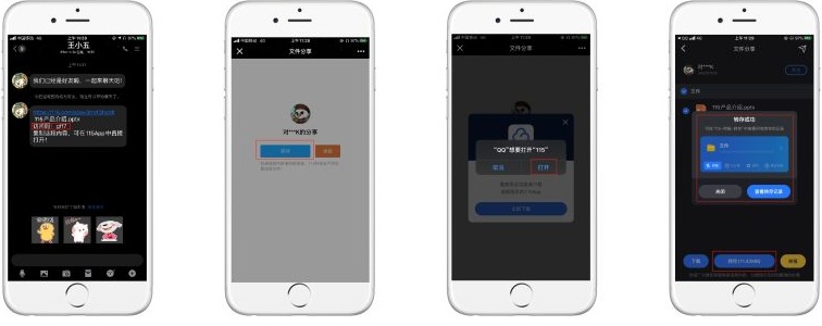 2.当存储在115的文件需要与好友分享的时候,115用户就可以通过「大众分享」、「雷达分享」、「口令分享」等方式,在115App,或者其他社交平台发送,被分享的115用户可以直接「转存」,或者复制口令在「115App」打开文件。