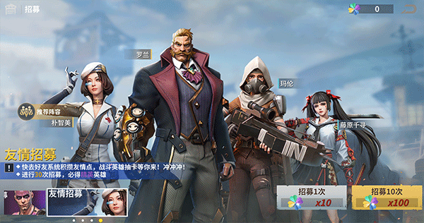 点击【招募】可随机招募到英雄。已招募到的英雄则会转化成同名海报,用于进阶英雄。