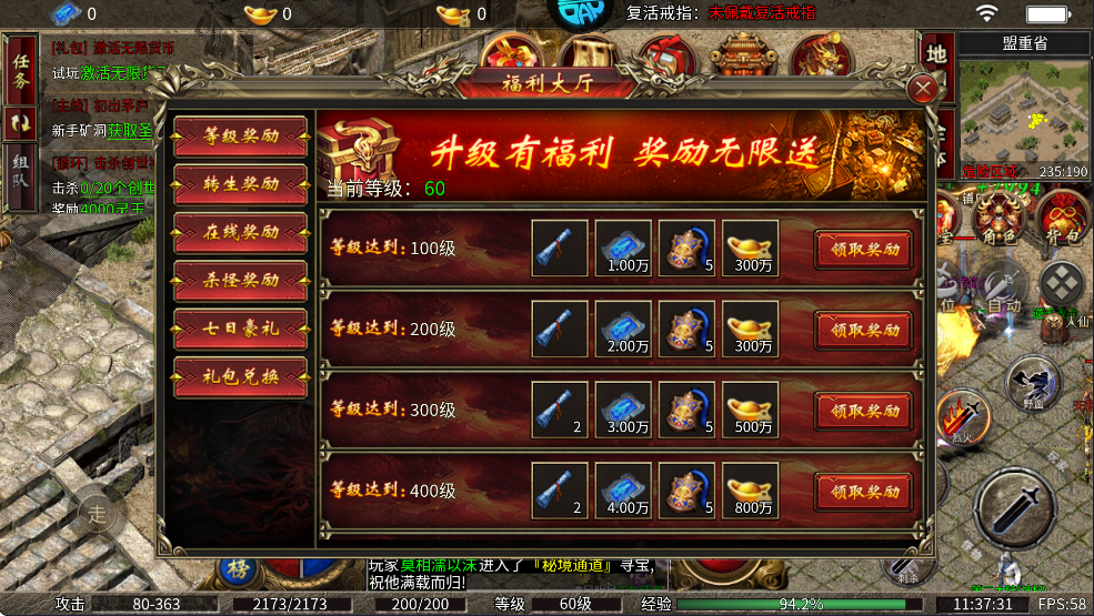6、过福利大厅获取经验卷/11-15转生石。继续提升转生去高级地图翱翔