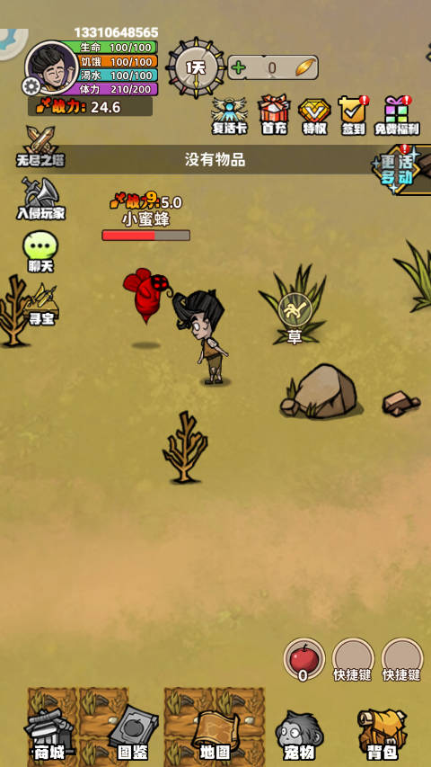 2、在外出采集的过程中,主角也需要吃喝来恢复饱腹度,否则就会挂掉,丢失材料。