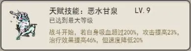 技能思路:堆叠吸血属性达到200%即可,针对击晕和闪避可以带上法则【四象】,核心忽视属性仍然是闪避和连击,技能一般为【恶水甘泉】+【凝神回击】+【无形春风】,宠物属性则需要抵御+吸血。