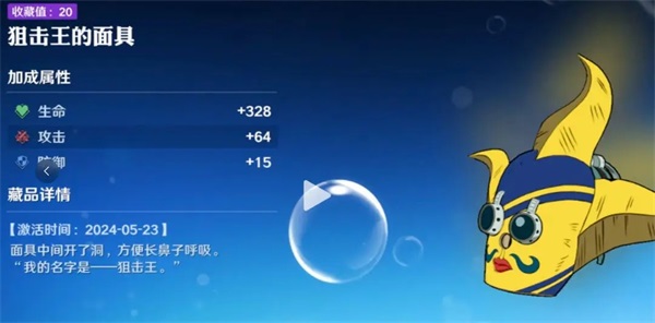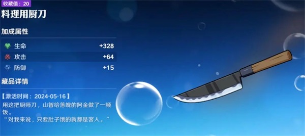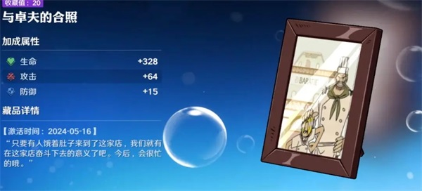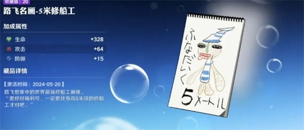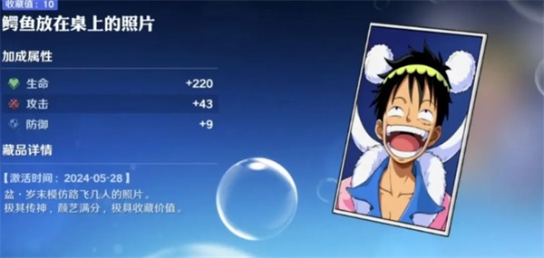 该藏品出现在主线剧情中,将原作的搞笑情节结合到了游戏剧情藏品里,并且藏品可以提高“生命”,“攻击”,“防御”。获取方式为主线剧情13-1,在进入关卡后直接往左走,左边桌子上可以捡到