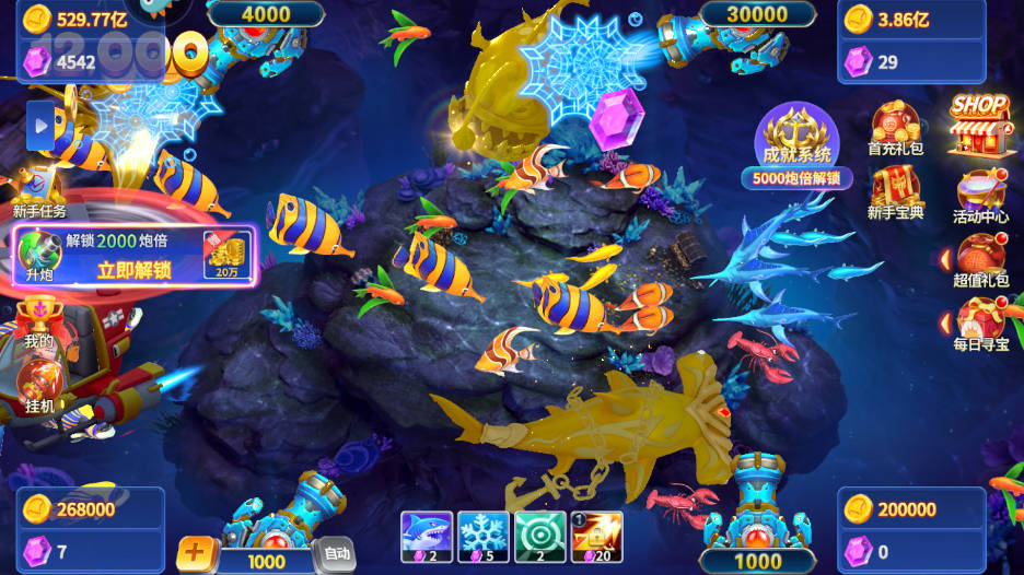 5、定期升级炮塔,提高攻击力是捕鱼的重要策略。高级炮塔对BOSS的击杀更有帮助,所以升级炮塔非常必要。当BOSS从渔场边缘出现时,这是最佳的捕获时机,确保你的炮塔足够强大,能够一举击败BOSS。