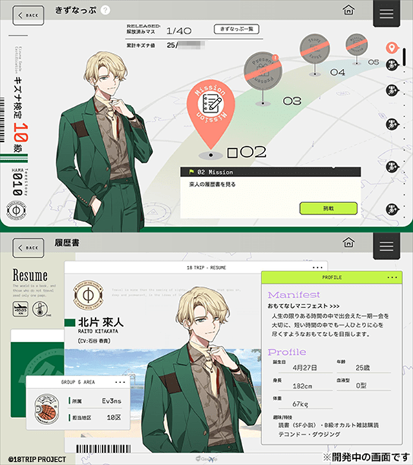 18TRIP手游是一款日服女性向、旅行冒险游戏,以近未来的横滨HAMA18区为背景,为了重振观光业,你与观光区长们一起奋斗的旅程!你能看到区长们为了重振观光,奋斗的模样以及他们的日常生活。在游戏玩法上,18TRIP有超过200段的丰富主线故事,Live2d、全语音的呈现,还有Q版小人的塔防小游戏!当然作为“圣地巡礼的游戏”《18TRIP》有旅行日志功能,不仅可以给玩家介绍游戏故事中的旅游景点,还可以用AR相机与自推合影!