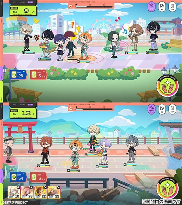 《18TRIP》是一款日服女性向手游,背景设定在未来的横滨HAMA18区。玩家需要与区长们一起努力振兴观光业,体验他们的奋斗日常和生活细节。游戏有超过200段主线故事,全语音呈现,还有Live2D技术让角色更生动。最让我觉得有趣的是塔防小游戏,用Q版小人接待游客,战斗设计很去“战斗化”,完全不紧张。