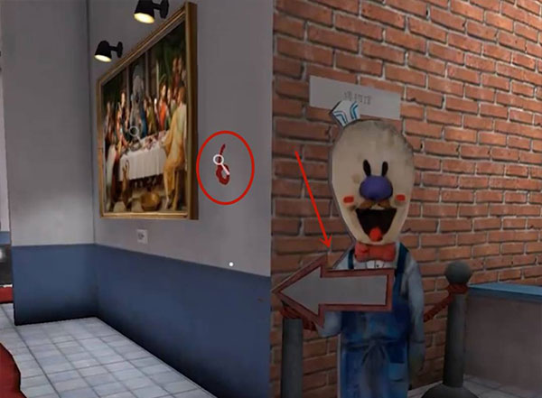 35、去接待室,按照雕像箭头指的方向,在墙上、照片背面或者雕像背面等地方,寻找数字密码,并记住顺序,如果没有找到4个数字,可以试着去箭头雕像的反方向找一找。