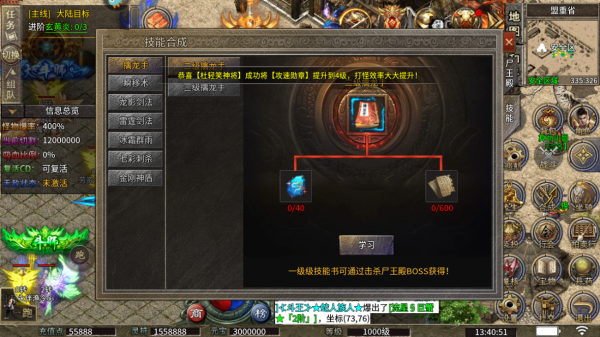 系统介绍:前往尸王殿获得技能书/技能书页,升级强力技能!