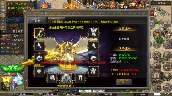 系统介绍:激活升级魔王装备,获得大量攻击加成和防麻套属!